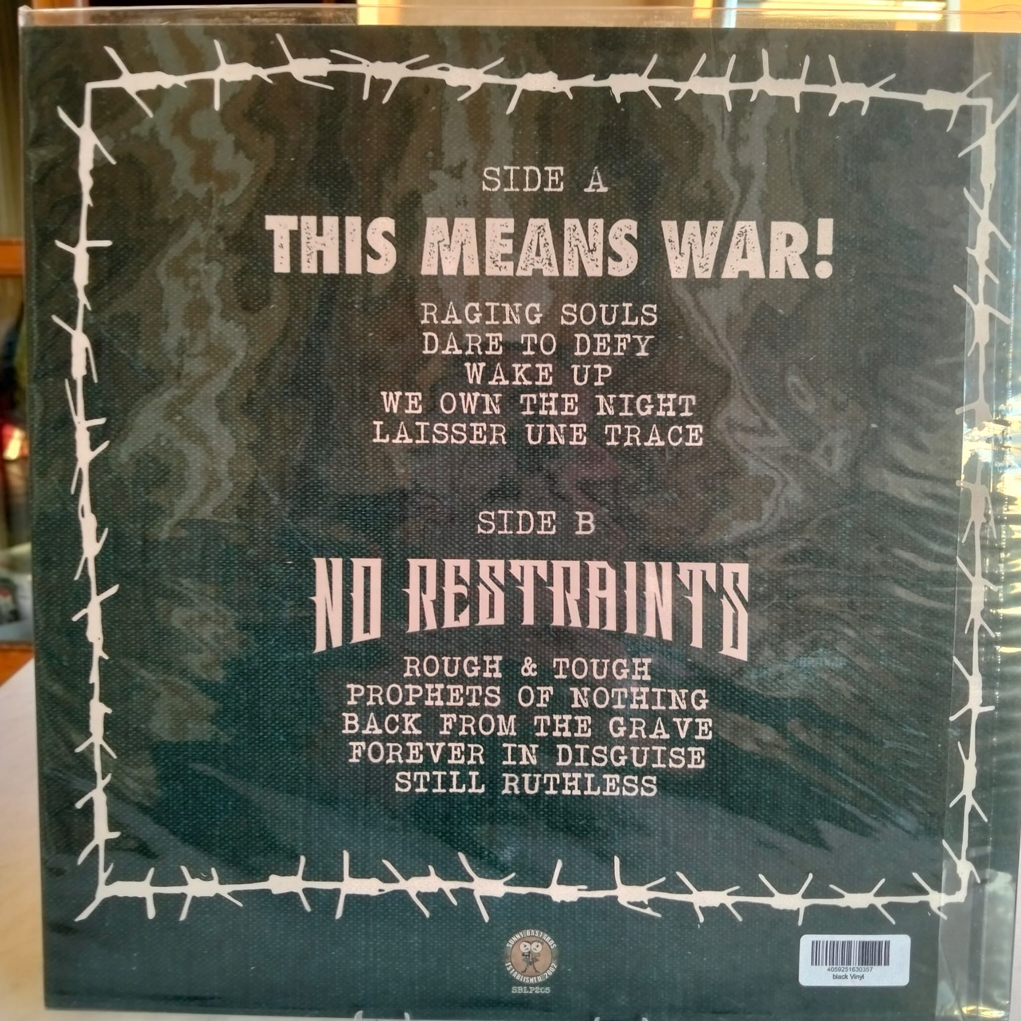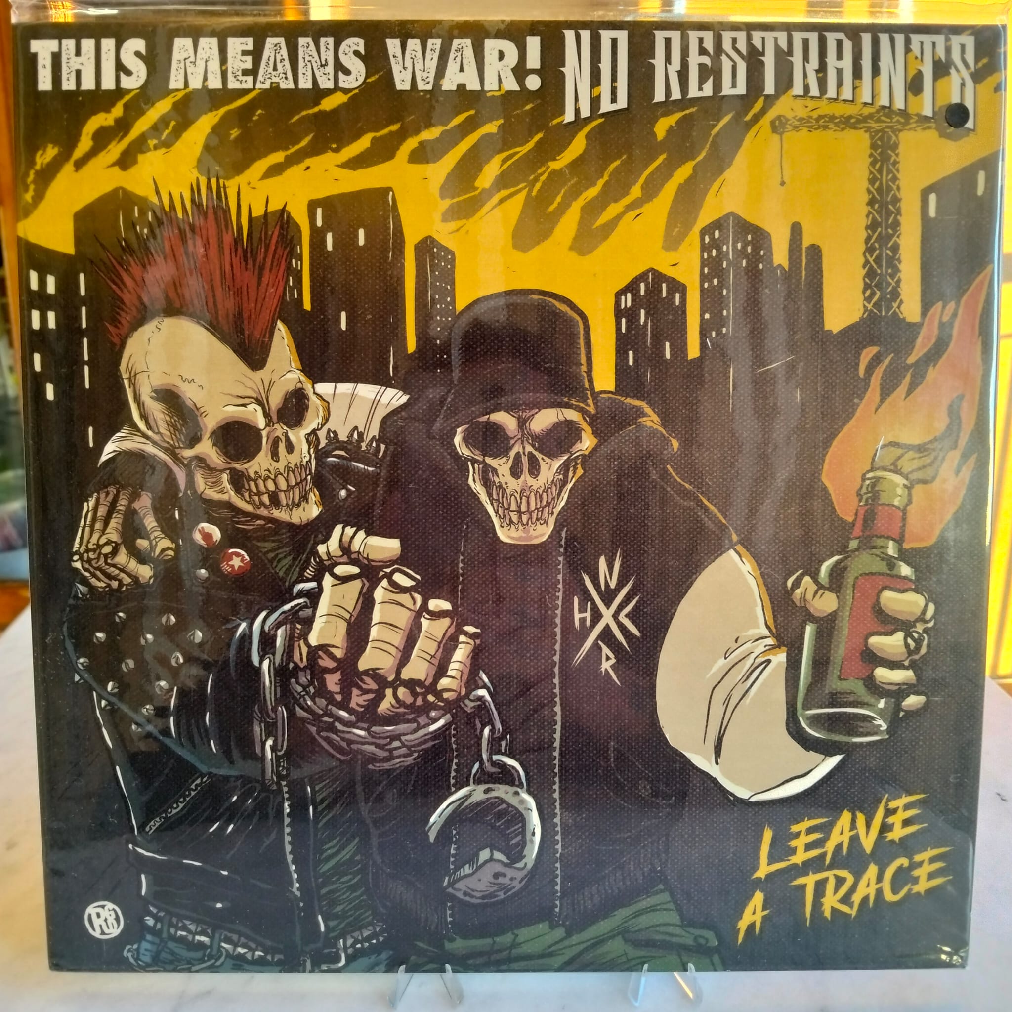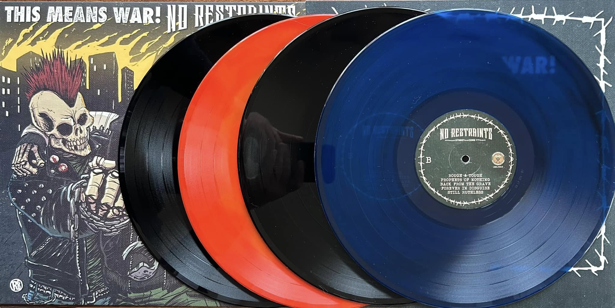 Split on 12" vinyl between the italian street core band No Restraints and This means war, punk from the Lowlands